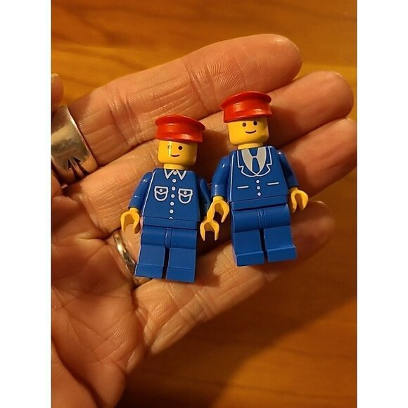 Vintage 1980s Lego Minifigures. These are the Construction Worker and Pilot. Both are in very nice shape, and both come with Pilot type hats.