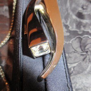 The sheen of the velvet-soft Blue Microfiber against the mirror-polished Gold -plated metalwork is a stunning contrast.. Lift open the Swarovski Crystal adorned, Silver-plated snap with the Rodo name to see the signature Black satin lining. There is a single slip pocket and it is flawless throughout. The side gussets are smooth and will keep your items inside. The chain is the metalwork on this gem and it pivots inside to carry as a clutch. All of the metalwork is like a mirror. Outside, it is absolutely remarkable. The huge Swarovski Crystals on each end of the snaps just add to the glamour is this Rodo. This is truly a handbag that show your good taste and make a stunning presentation whenever, and wherever you wear it. The looks and compliments will never stop and will make you smile.