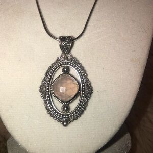 Vintage Rose Quartz Sterling Silver Filigree Pendant on 925 Sterling Snake 18”