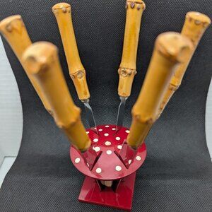 VTG Rostfrei German Soligen Bamboo knife set with mushroom stand