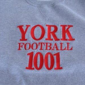 Design & Features: The crew neck design provides a comfortable and casual fit, while the light gray color serves as a versatile base. The embroidered "York Football 1001" adds a retro, varsity-inspired touch, giving the sweater an authentic sportswear vibe. Made from soft, durable fabric, it’s designed for both comfort and longevity, ideal for everyday wear or lounging.