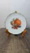 Decorative plate with a vibrant fruit design. Features an orange, berries, and leaves. Perfect for display.