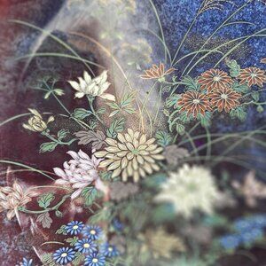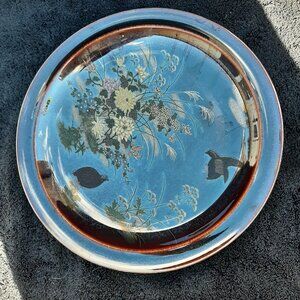 VTG Serving Platter Grouse Birds Flowers Iridescent Pattern Japan Round 12" D