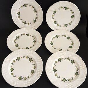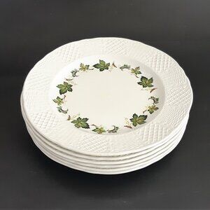 VTG Set of 6 Salad Plates England Green Ivy Embossed Rim Concorde Pattern 8"