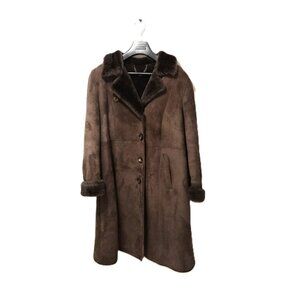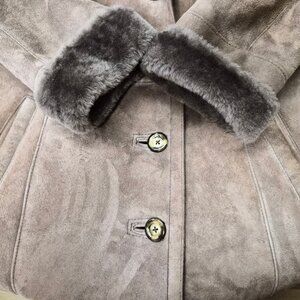 VTG Shearling Coat – Suede Outer, Shearling Collar & Cuffs 2 Pockets Canada