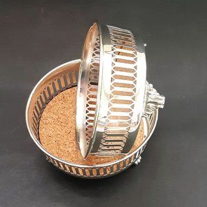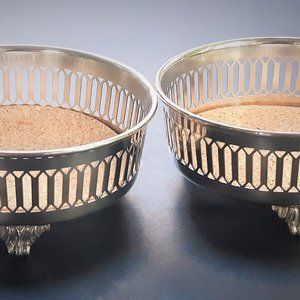 VTG Silverplate Footed Wine Bottle Coaster Holders Set of 2 Pierced Cork Insert