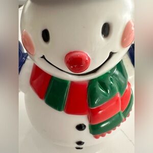 VTG Snowman Light Cover Figurine Christmas 8” Hard Plastic Blow Mold