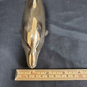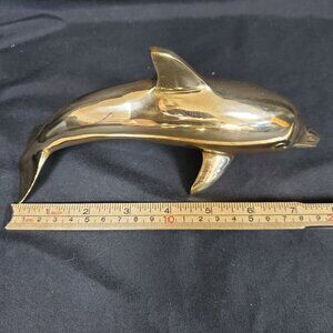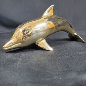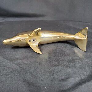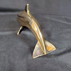 Bring a touch of coastal charm to your home with this vintage solid brass dolphin figurine. Its sleek, polished form captures the playful spirit of the ocean while adding an elegant golden shine to your shelf, mantel, or desk.