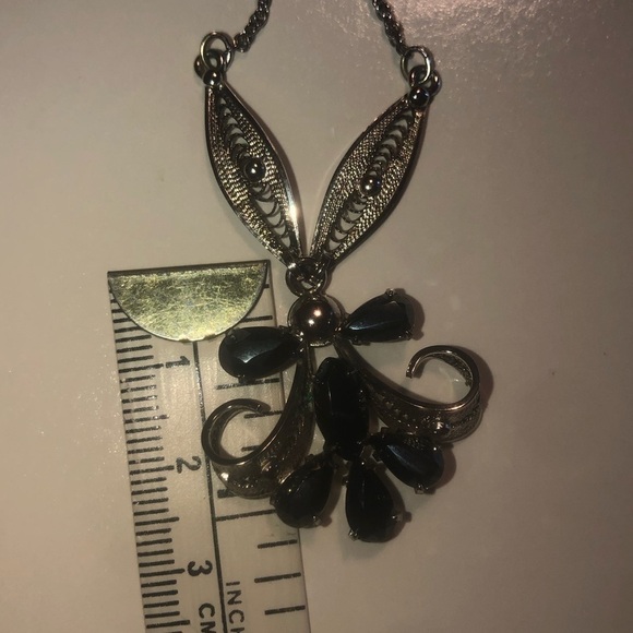 VTG Sorrento Sterling Floral Filigree Hematite Stone 17” + 1” Pendant