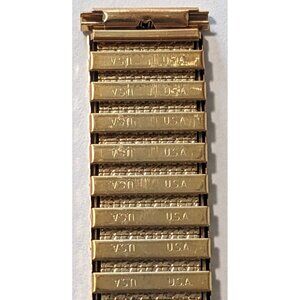 Description : gold tone, expandable , adjustable. Comes with 2 spring bars. Compatible with 16mm, 17 mm, 18 mm timepieces .