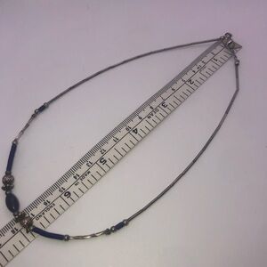 Vtg Sterling Lapis Lazuli Heishi Tube Bead Liquid Silver Necklace 14”