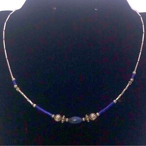 VTG Sterling Lapis Lazuli Heishi Tube Bead Liquid Silver Necklace 14”