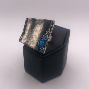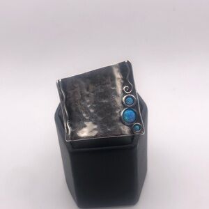 Vintage sterling silver and blue Opal large abstract statement ring.