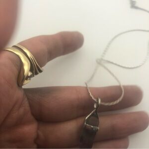 Vtg Sterling & Purple Green Fluorite Crystal Stone Pendant & Chain 16” & 1.2”