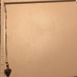 Vintage Pink & Black Rhodonite Stone pendant - Large Triangle stone and smaller teardrop pear shaped stone. Chain is very nice, links almost look doubled? Very shiny Italian silver chain.