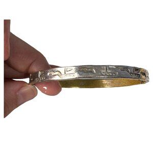Crafted with elegance, this vintage Sterling Silver bangle bracelet from Hecho En Mexico features a sleek sailboat design, ideal for those who appreciate maritime motifs. The bracelet showcases a classic round shape, complemented by a timeless silver hue that easily transitions from day to night wear. With its unisex appeal, this piece is a versatile addition to any jewelry collection.The bracelet is a testament to fine craftsmanship, marked with a 925 metal purity stamp, and it comes with the assurance of being signed by the brand. Its stackable style allows for easy pairing with other bracelets or wristwear, making it a perfect accessory for both casual and formal occasions.