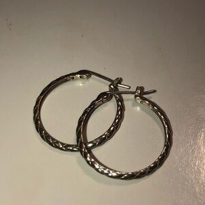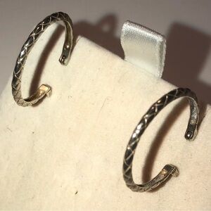 VTG Sterling Silver Criss Cross Engraved Design Hoops Earrings 1”