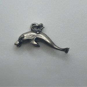 VTG Sterling Silver Dolphin w Barbell Mini Charm for Charm Bracelet