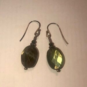 VTG Sterling Silver Labradorite Oval Facet Cut Earrings 1.5”