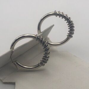 VTG Sterling Silver Rope / Cable Twist Hoop Earrings 925 Italy Approx 1.2”
