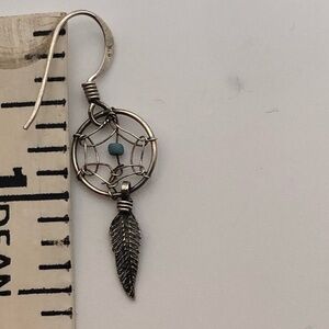 Vintage sterling silver and turquoise stone accent dream catcher earrings.
