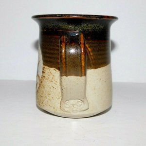 This stunning vintage Studio Pottery Hand Thrown Glazed Brown Tan IRIS Flower Coffee Mug is in Excellent clean condition. Marked S+GB. Measures 4" tall and 3.5" in diameter at the opening. Area where Iris image is not glazed.