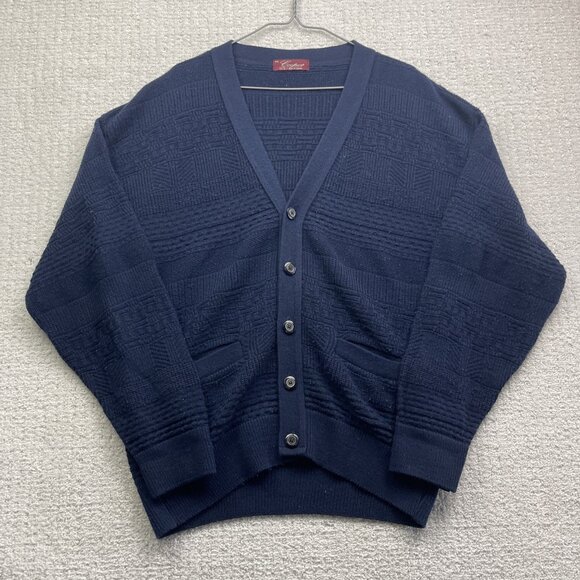 VTG Sweater Men M Blue Cooper Wool Blend Cardigan Grandpa Button 90s Canada Made