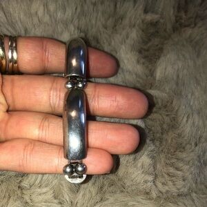 Vintage Taxco Sterling Silver Geometric Rectangle & Ball Link Bracelet w Safety Chain