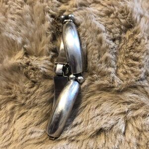 VTG Taxco 925 Silver Geometric Rectangle & Ball Link Bracelet w Safety Chain