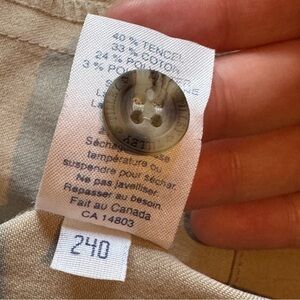 Materials: 40% tencel, 33% cotton, 24% polyester, 3% polyurethane.