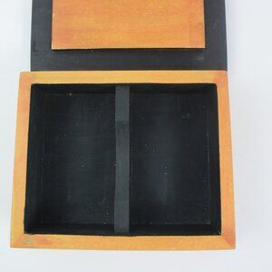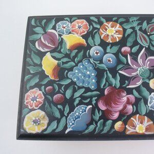 VTG Tole Painted Handmade Wooden Card Trinket Jewelry Box Signed Dated