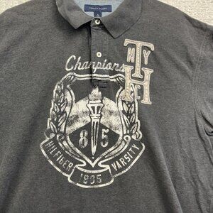 VTG Tommy Hilfiger 1985 Grey Polo Shirt Men XL Varsity Champion Graphic Read