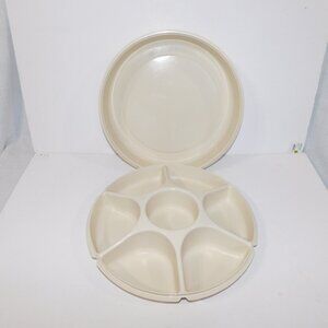 VTG Tupperware Divided 7 Compartment Vegetable Chips Round Serving Tray 1666-1