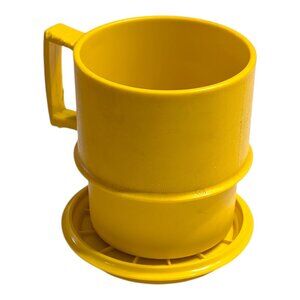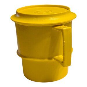 VTG Tupperware Yellow Coffee Mug Cup With Lid Travel Kitchenware USA