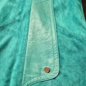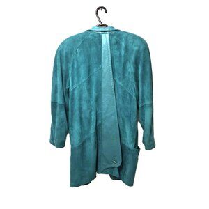 VTG Turquoise Leather Suede Coat Lindzon by Bellissimo Canada Open Front Boho