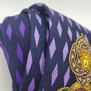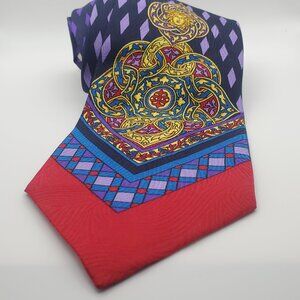 VTG VERSACE Men's Silk Tie Mandala Emblem Design Geometric Pattern Red Blue