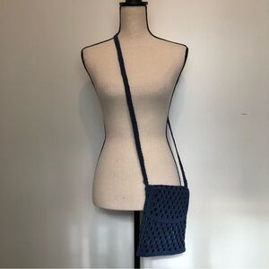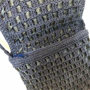 VTG Valerie Barad for Cabrelli purse cross body bag navy blue ribbon crochet EUC