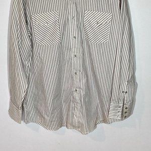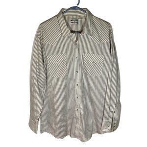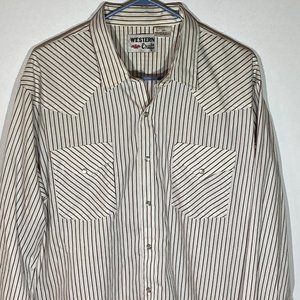 VTG WMG Western Striped Mens Button White Size XL Pearl Snap 2Pocket Long Sleeve