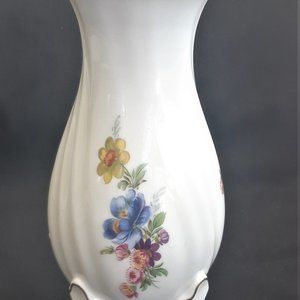 VTG Weimar Thuringian porcelain Germany Hand Painted Vase on Feet Dresden Flowers Porzellan Thuringer Handarbeit