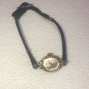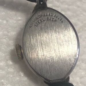 Vintage Wittnauer 10k gold filled bezel oval shape wrist watch - 1 Diamond on either side of watch face (2 diamonds total)