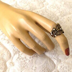 VTG Women’s White Pearl Floral Design Vintage Copper Ring Size 5