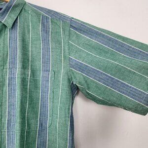 VTG Woolrich Mens Med Green Blue Cotton Stripe Short Sleeve Button Up Singapore