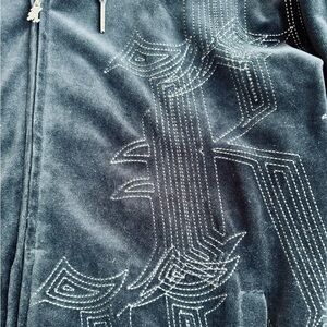 VTG Y2K Karl Kani Navy Black Velour Hoodie Size: XXL