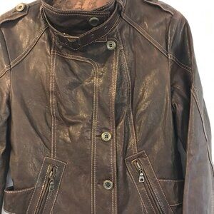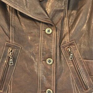 VTG Y2K Leather Moto Jacket Brown Italian Danier western rodeo 80's Women S