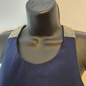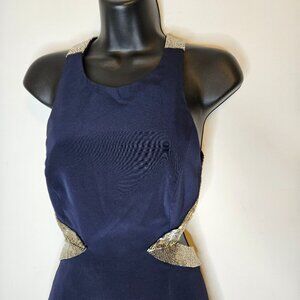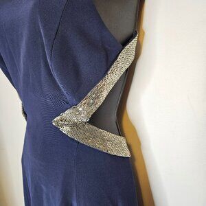 VTG Y2K Niteline Cut-out Maxi Dress Sz 4 Beaded Navy Blue Party