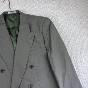 VTG YSL Yves Saint Laurent Men's Double Breasted Blazer Grey / Green Wool READ**