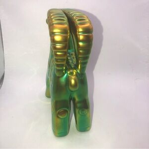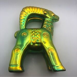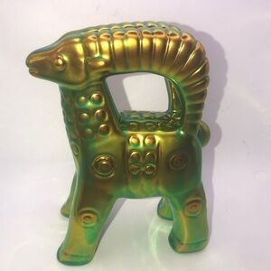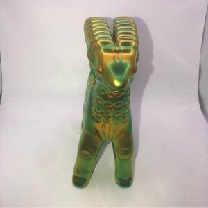 VTG Zsolnay Art Deco Style Green Gold Eosin Glaze Porcelain Ram Figurine - 6”