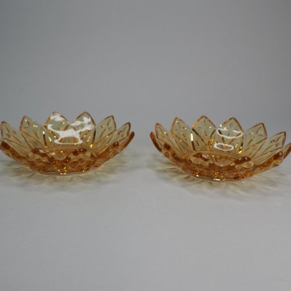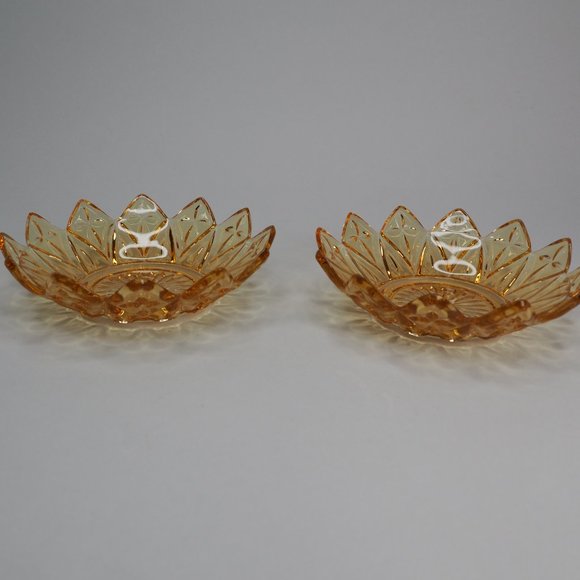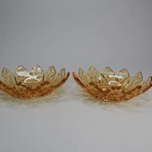 vintage pair of amber Federal Glass flower shaped small dish bowls.