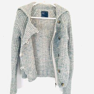 Very special sweater by American Eagle, vintage and Y2K. Sweater is double breasted with loop button closure and a zip front for warmth. It has a shawl collar and front pockets. Sweater is green and oatmeal knit in a blend of Alpaca, Mohair, wool and acrylic blend. It can be washed by hand with cold water. Women's size Small, in country heritage styling.