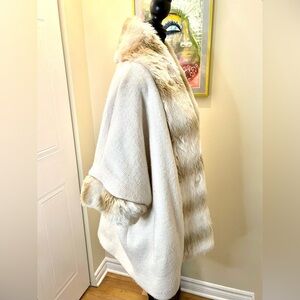 🆕VTG/LUXE by Irina faux fur knit open kimono style coat,satin line,cream color.